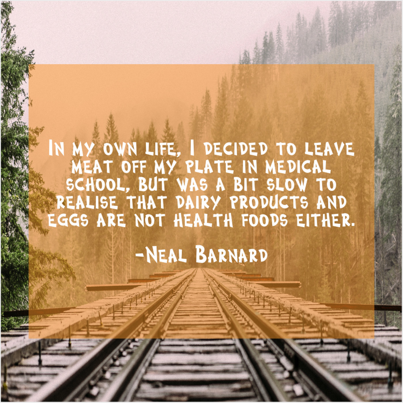 Neal Barnard Neal Barnard – In my own life, I… April 18, 2019 admin “In my own life, I decided to leave meat off my plate in medical school, but was a bit slow to realise that dairy products and eggs are not health foods either.”-Neal Barnard