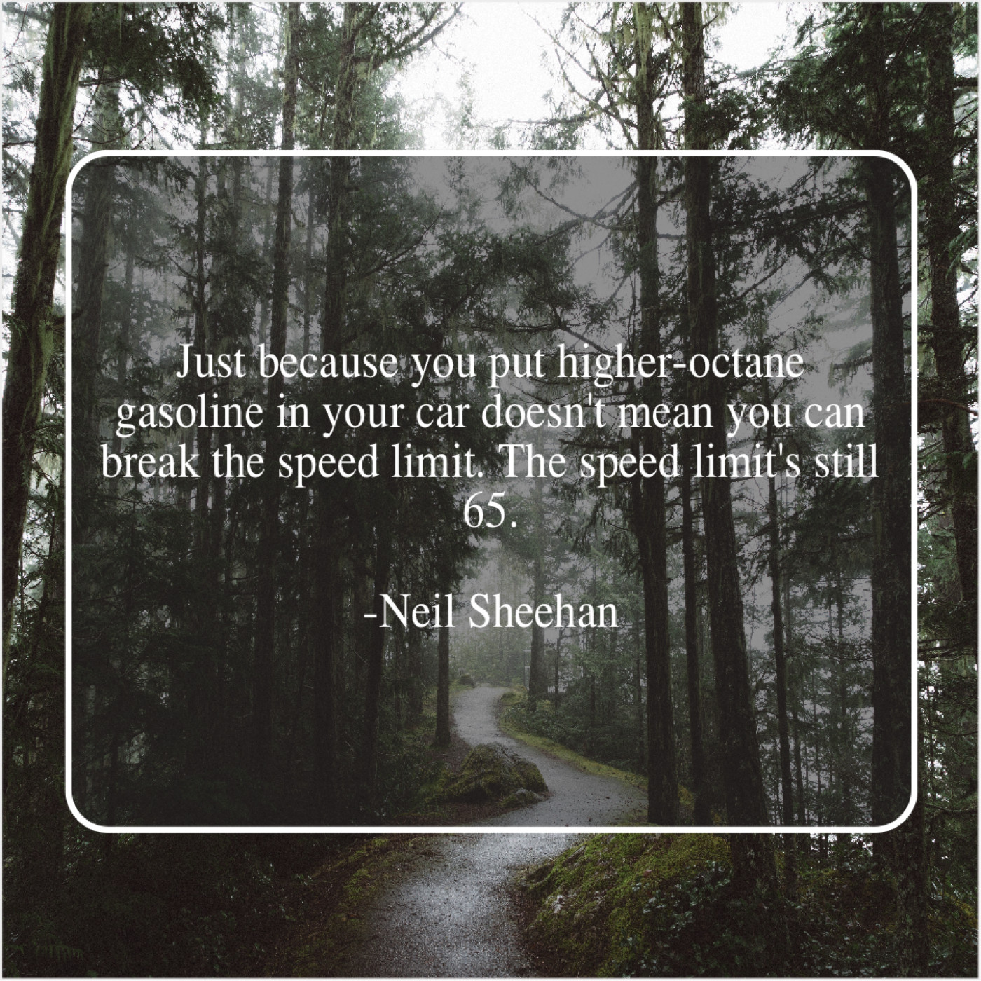 Neil Sheehan Neil Sheehan – Just because you put higher… August 14, 2019 admin “Just because you put higher-octane gasoline in your car doesn’t mean you can break the speed limit. The speed limit’s still 65.”-Neil Sheehan