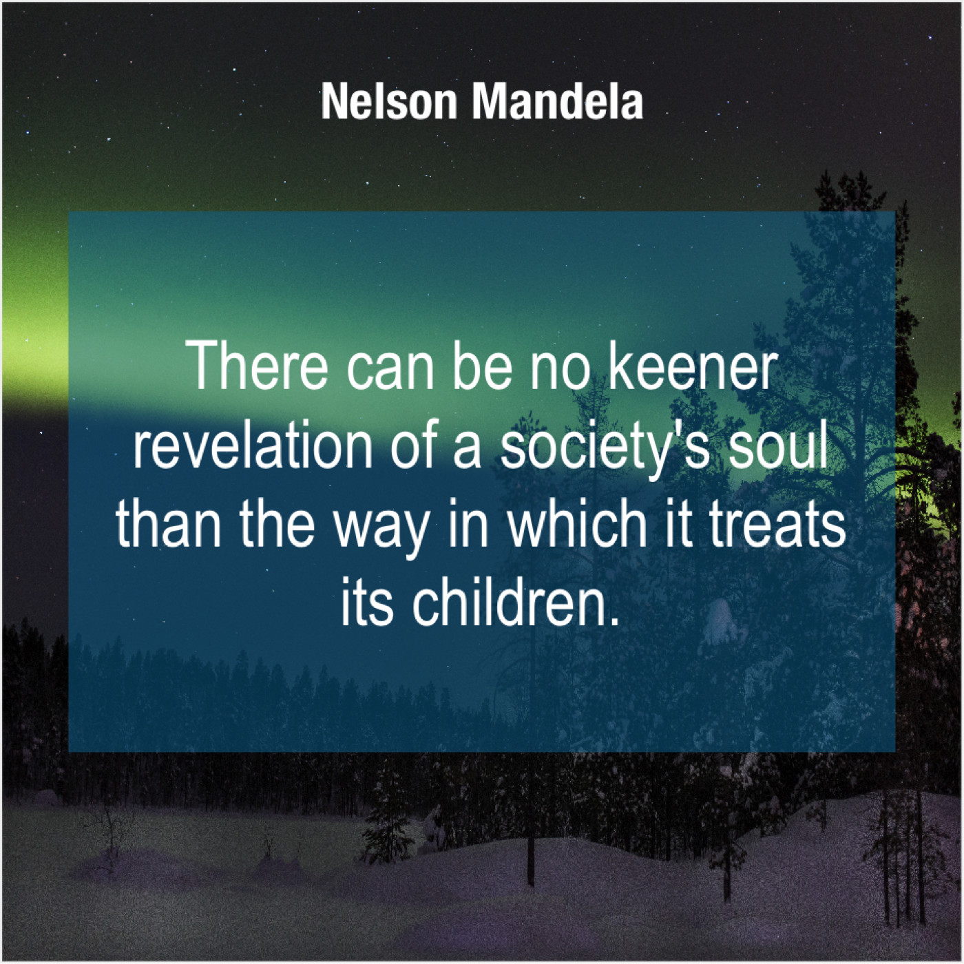 Nelson Mandela Nelson Mandela – There can be no keener… April 6, 2019 admin “There can be no keener revelation of a society’s soul than the way in which it treats its children.”-Nelson Mandela