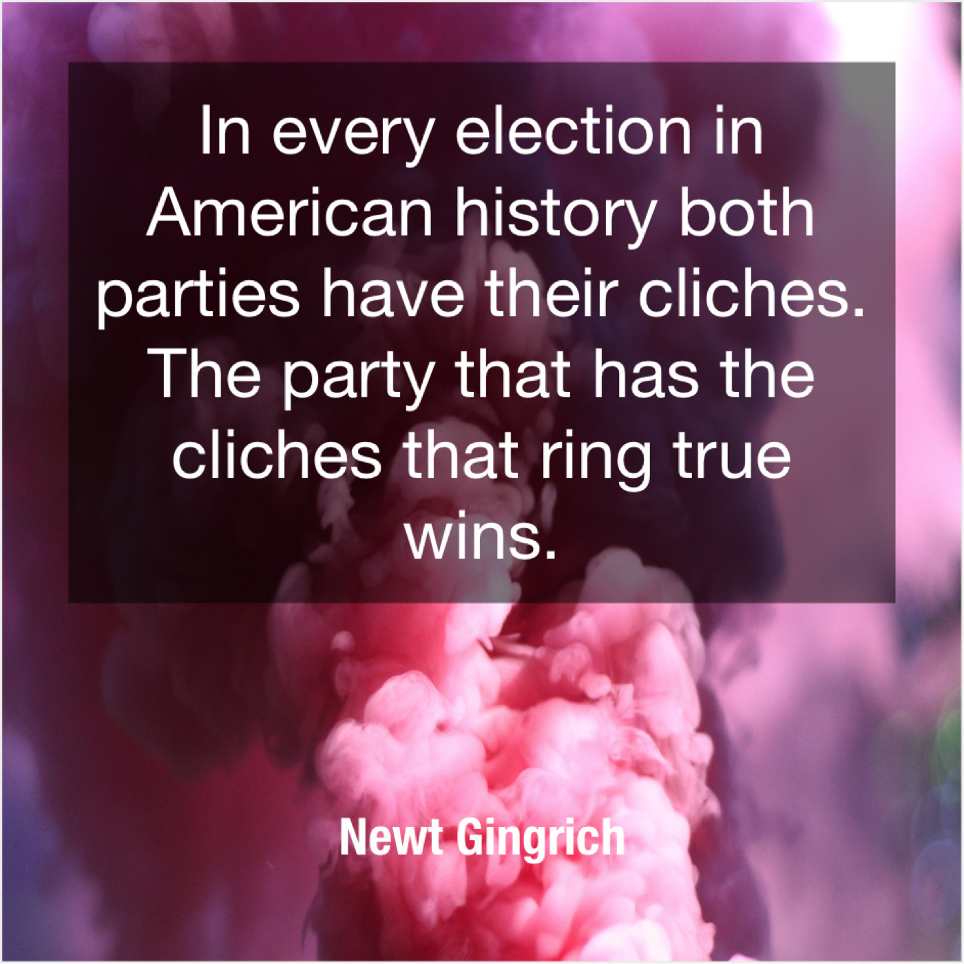 Newt Gingrich Newt Gingrich – In every election in American… September 22, 2019 admin “In every election in American history both parties have their cliches. The party that has the cliches that ring true wins.”-Newt Gingrich