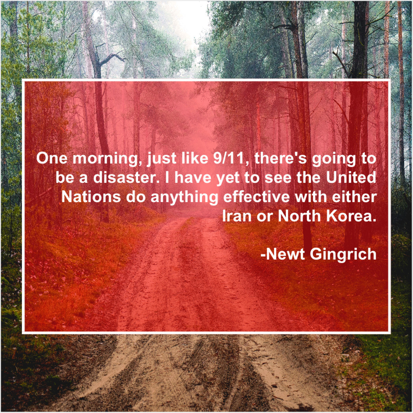 Newt Gingrich Newt Gingrich – One morning, just like 9/11… March 28, 2019 admin “One morning, just like 9/11, there’s going to be a disaster. I have yet to see the United Nations do anything effective with either Iran or North Korea.”-Newt Gingrich