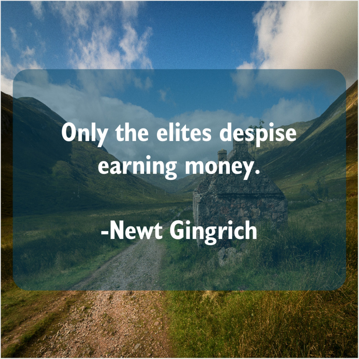 Newt Gingrich Newt Gingrich – Only the elites despise earning… October 17, 2019 admin “Only the elites despise earning money.”-Newt Gingrich