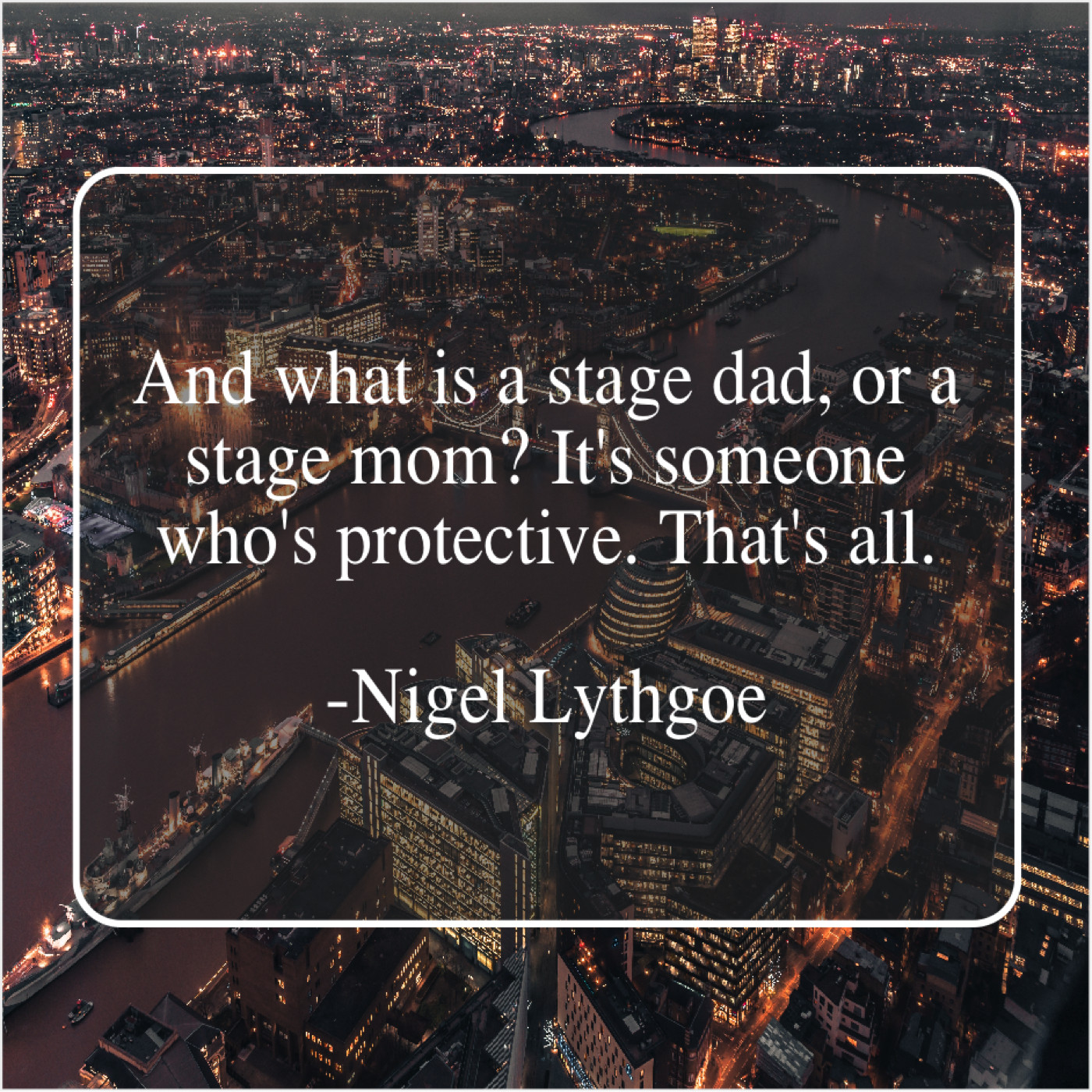 Nigel Lythgoe Nigel Lythgoe – And what is a stage… October 23, 2019 admin “And what is a stage dad, or a stage mom? It’s someone who’s protective. That’s all.”-Nigel Lythgoe