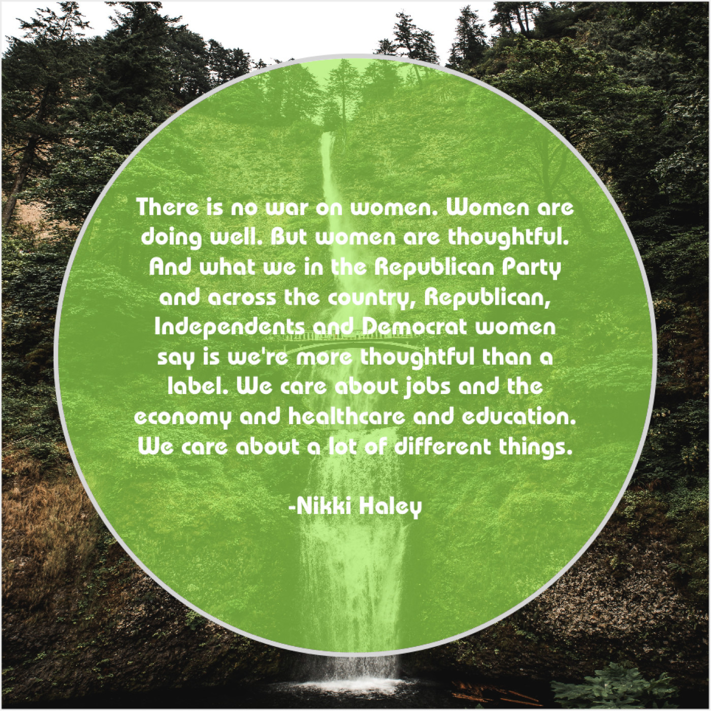 “There is no war on women. Women are doing well. But women are thoughtful. And what we in the Republican Party and across the country, Republican, Independents and Democrat women say is we’re more thoughtful than a label. We care about jobs and the economy and healthcare and education. We care about a lot of different things.”
