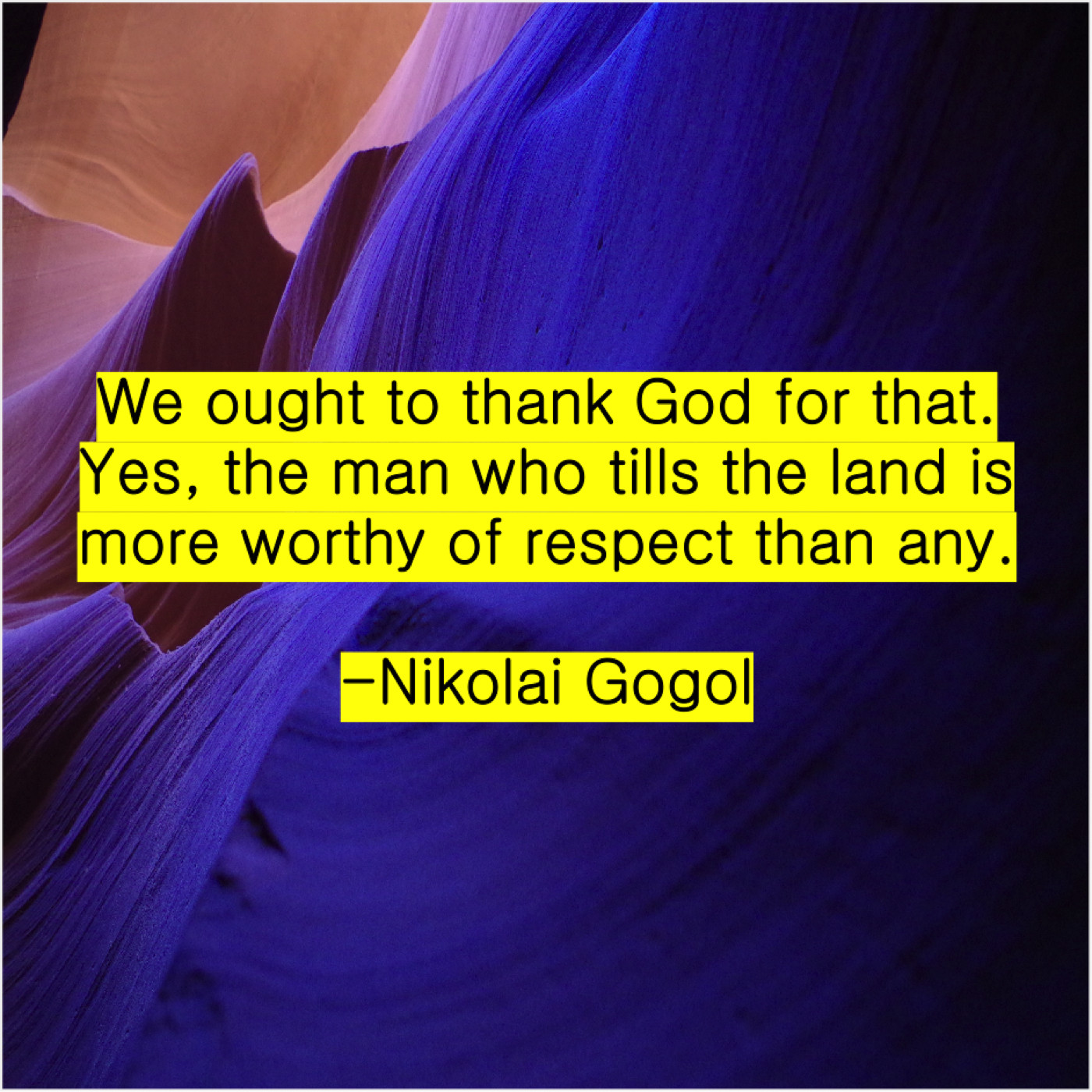 Nikolai Gogol Nikolai Gogol – We ought to thank God… January 4, 2019 admin “We ought to thank God for that. Yes, the man who tills the land is more worthy of respect than any.”-Nikolai Gogol