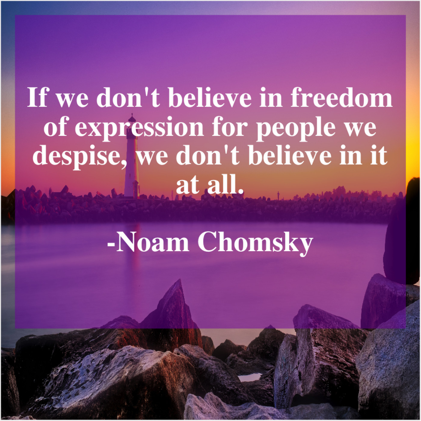 Noam Chomsky Noam Chomsky – If we don’t believe in… March 18, 2019 admin “If we don’t believe in freedom of expression for people we despise, we don’t believe in it at all.”-Noam Chomsky