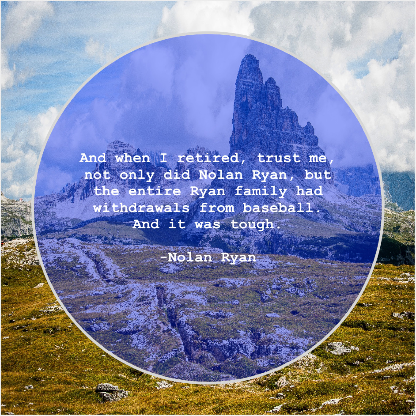Nolan Ryan Nolan Ryan – And when I retired, trust… October 10, 2019 admin “And when I retired, trust me, not only did Nolan Ryan, but the entire Ryan family had withdrawals from baseball. And it was tough.”-Nolan Ryan