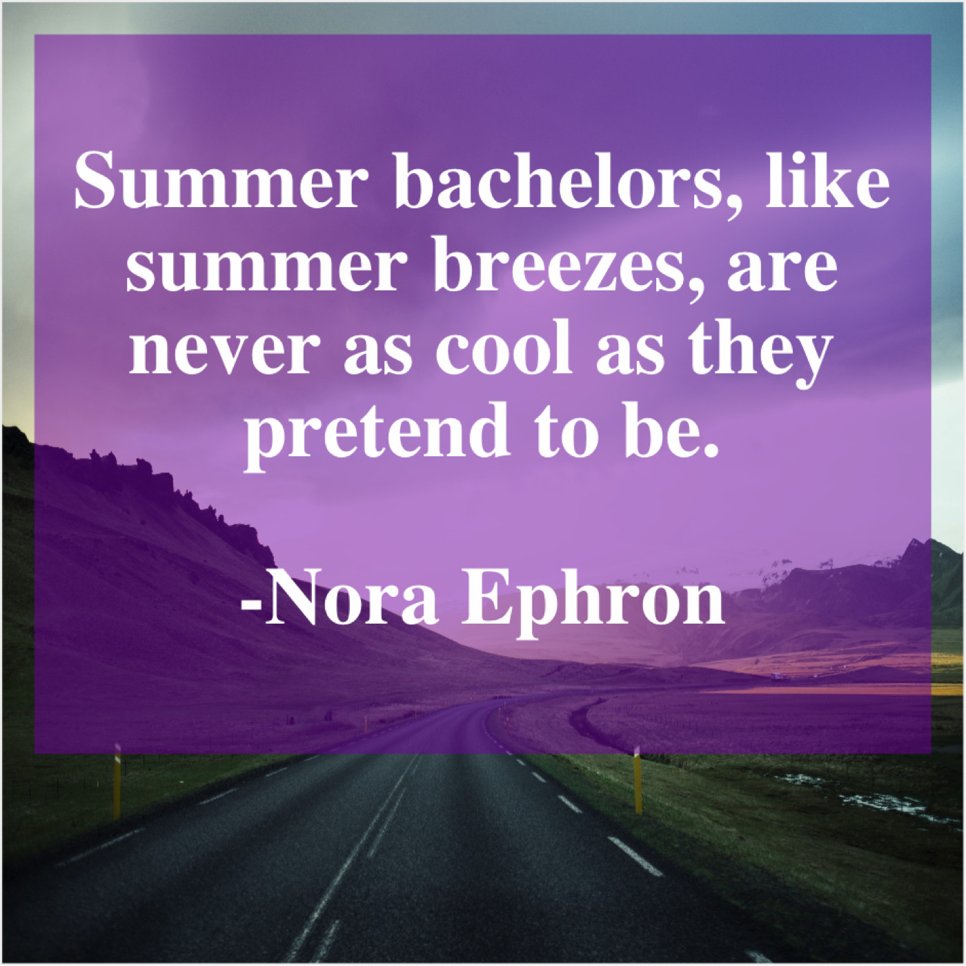 Nora Ephron Nora Ephron – Summer bachelors, like summer breezes… April 20, 2019 admin “Summer bachelors, like summer breezes, are never as cool as they pretend to be.”-Nora Ephron