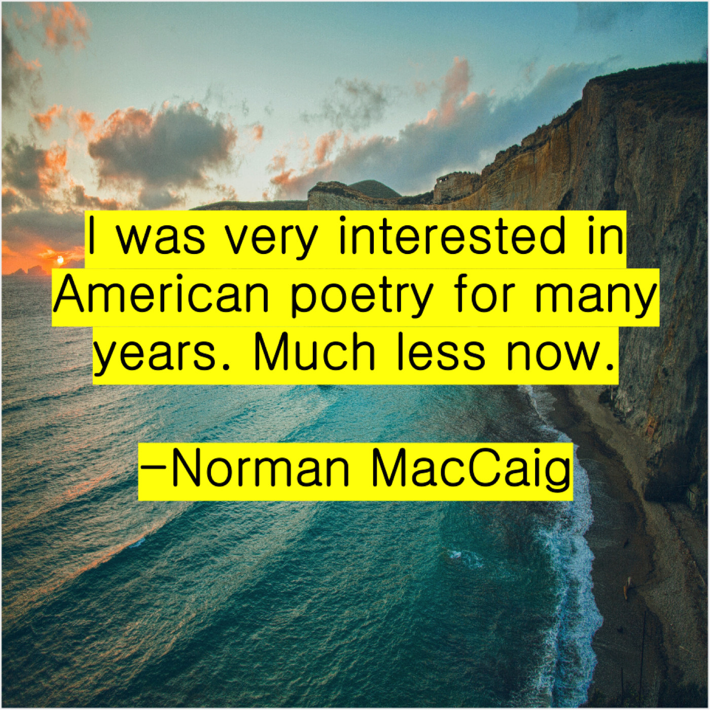 Norman MacCaig Norman MacCaig – I was very interested in… August 14, 2019 admin “I was very interested in American poetry for many years. Much less now.”-Norman MacCaig