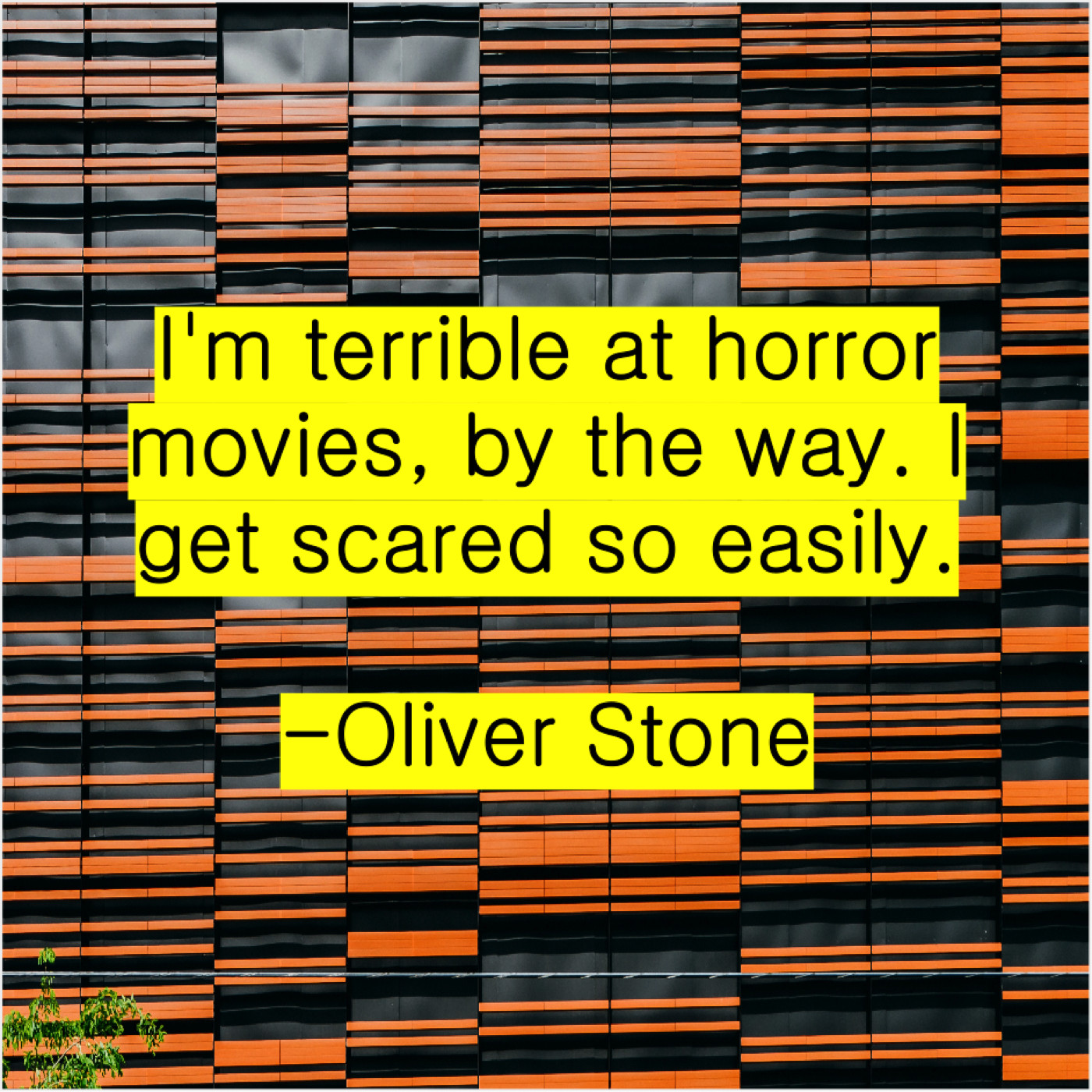Oliver Stone Oliver Stone – I’m terrible at horror movies… March 18, 2019 admin “I’m terrible at horror movies, by the way. I get scared so easily.”-Oliver Stone