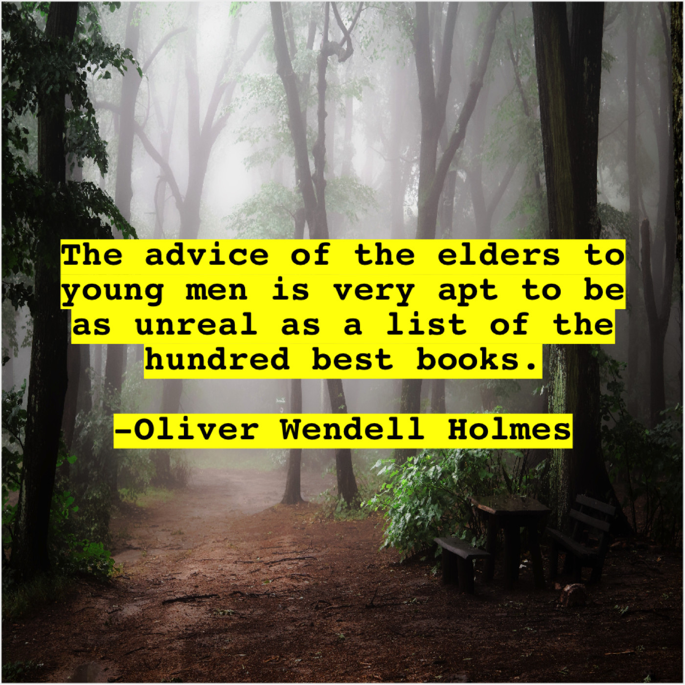 Oliver Wendell Holmes Oliver Wendell Holmes – The advice of the elders… April 19, 2019 admin “The advice of the elders to young men is very apt to be as unreal as a list of the hundred best books.”-Oliver Wendell Holmes