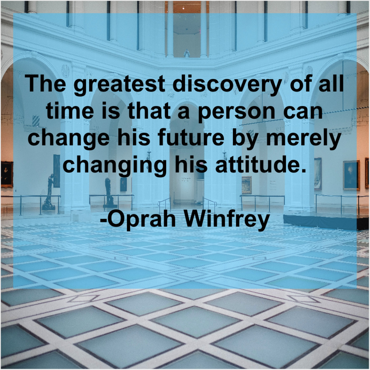 Oprah Winfrey Oprah Winfrey – The greatest discovery of all… August 23, 2019 admin “The greatest discovery of all time is that a person can change his future by merely changing his attitude.”-Oprah Winfrey