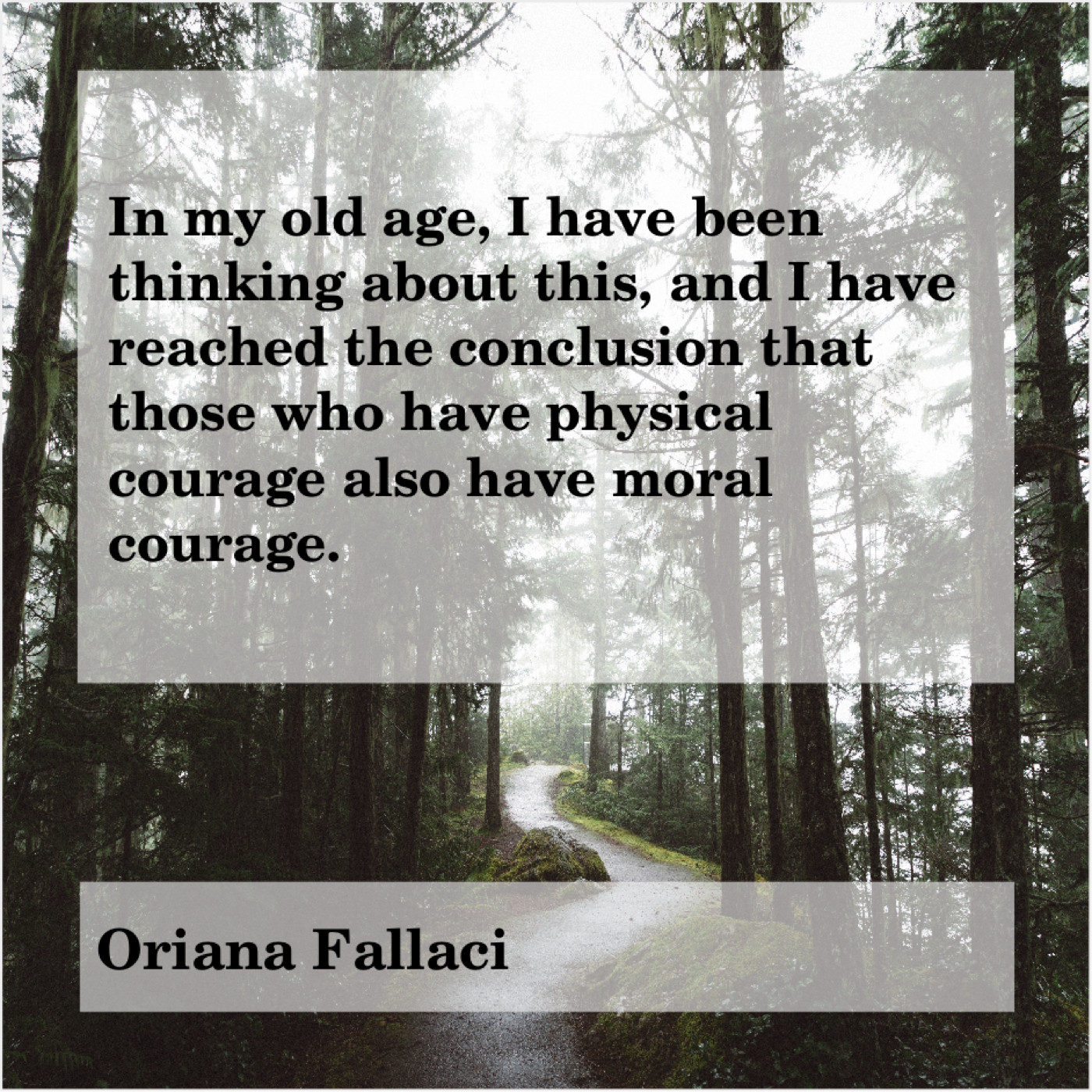 Oriana Fallaci Oriana Fallaci – In my old age, I… October 9, 2019 admin “In my old age, I have been thinking about this, and I have reached the conclusion that those who have physical courage also have moral courage.”-Oriana Fallaci