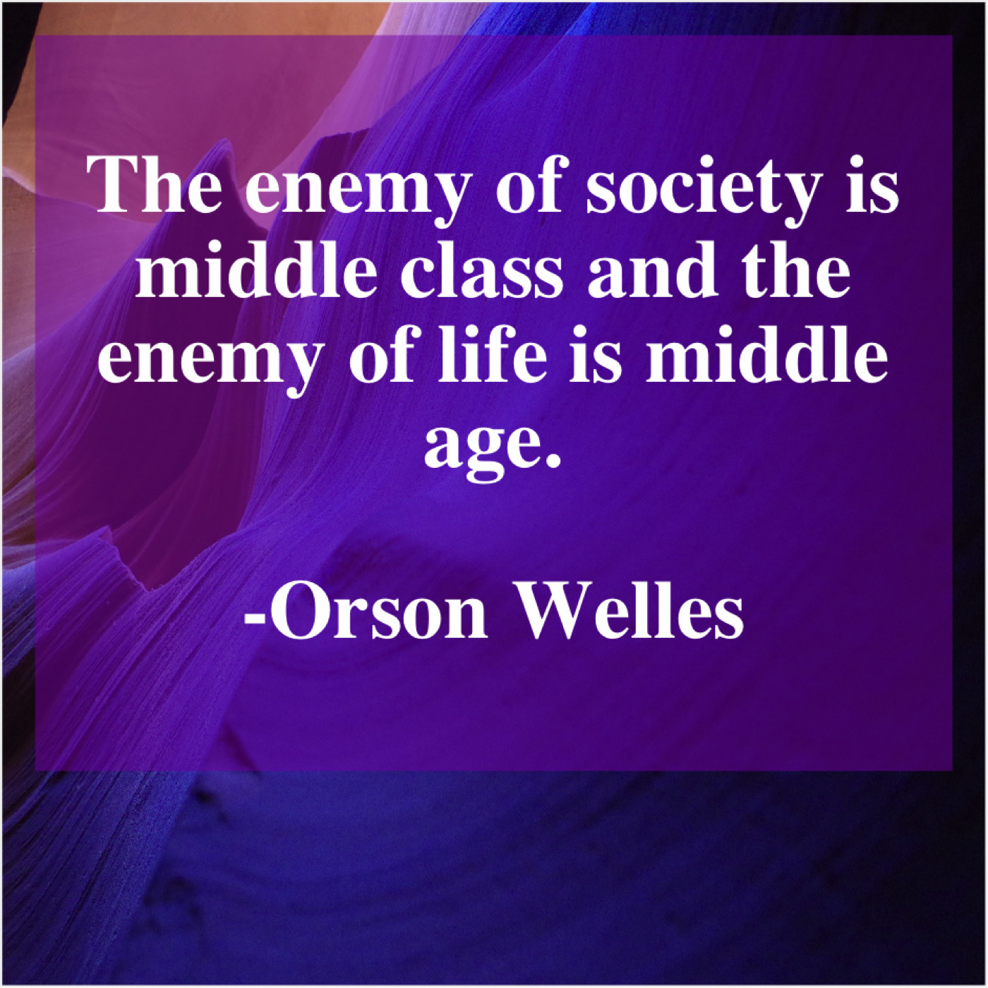 Orson Welles Orson Welles – The enemy of society is… February 12, 2019 admin “The enemy of society is middle class and the enemy of life is middle age.”-Orson Welles