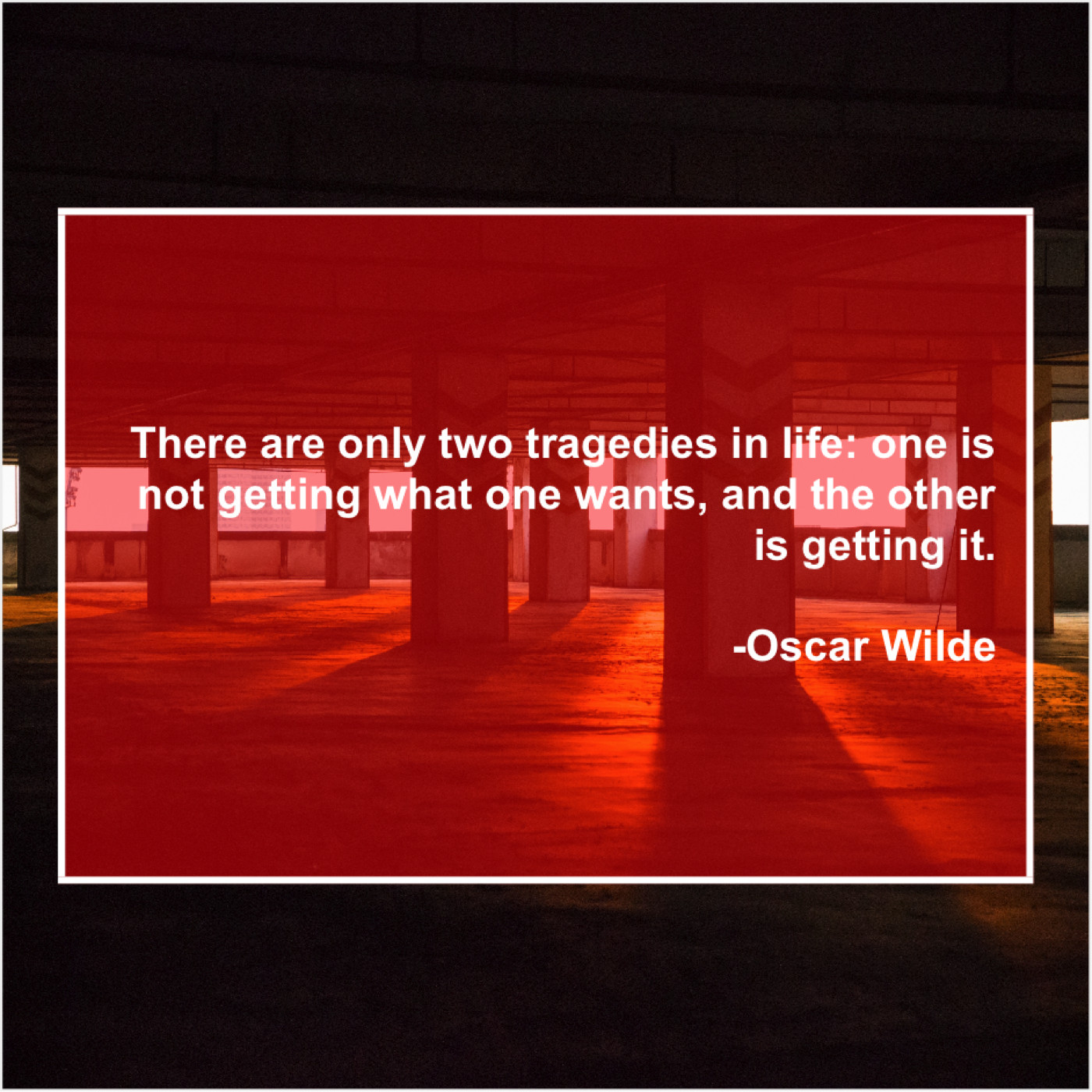 Oscar Wilde Oscar Wilde – There are only two tragedies… September 28, 2019 admin “There are only two tragedies in life: one is not getting what one wants, and the other is getting it.”-Oscar Wilde
