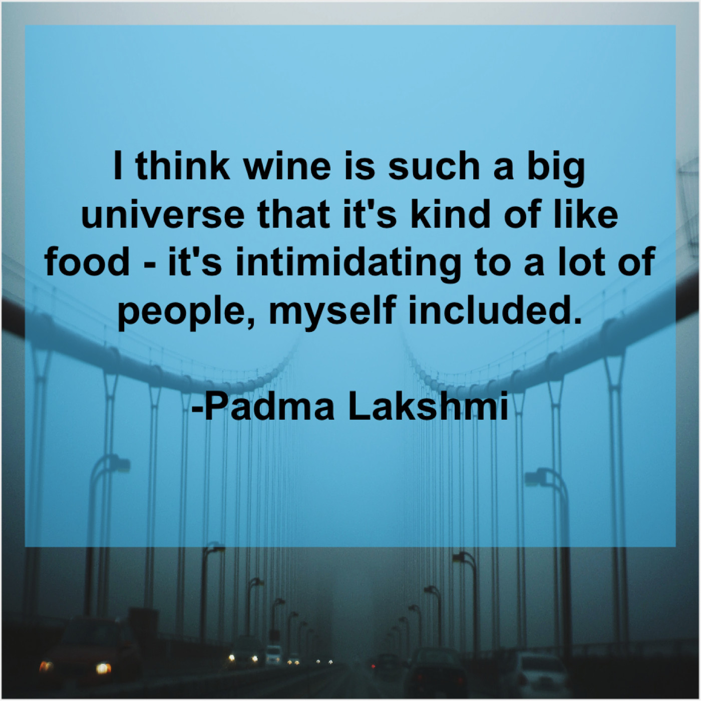 Padma Lakshmi Padma Lakshmi – I think wine is such… September 5, 2019 admin “I think wine is such a big universe that it’s kind of like food – it’s intimidating to a lot of people, myself included.”-Padma Lakshmi