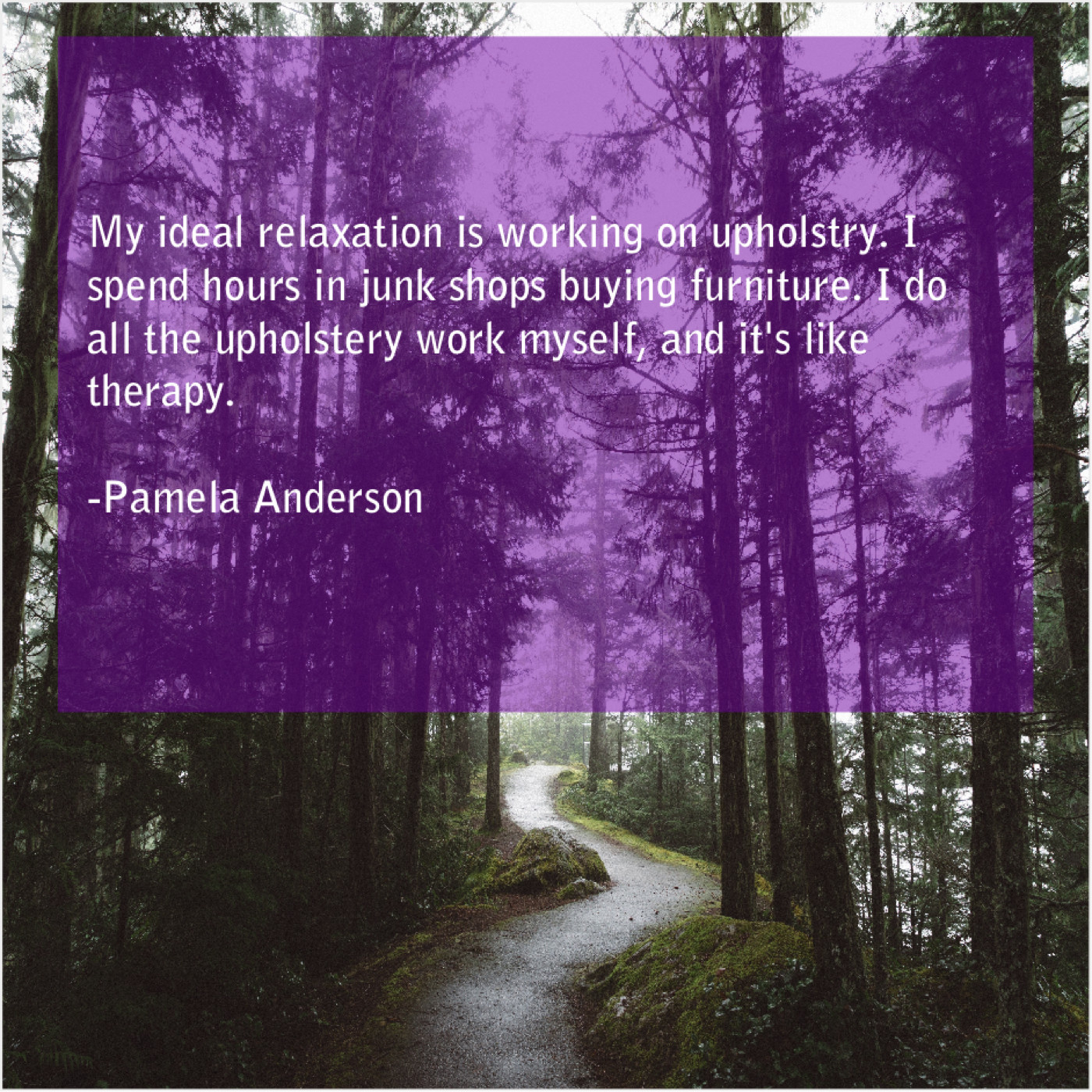 Pamela Anderson Pamela Anderson – My ideal relaxation is working… February 8, 2019 admin “My ideal relaxation is working on upholstry. I spend hours in junk shops buying furniture. I do all the upholstery work myself, and it’s like therapy.”-Pamela Anderson