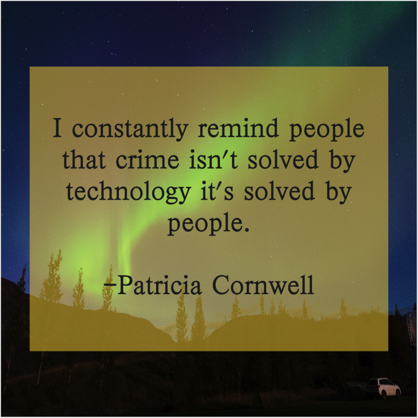Patricia Cornwell Patricia Cornwell – I constantly remind people that… July 11, 2019 admin “I constantly remind people that crime isn’t solved by technology it’s solved by people.”-Patricia Cornwell
