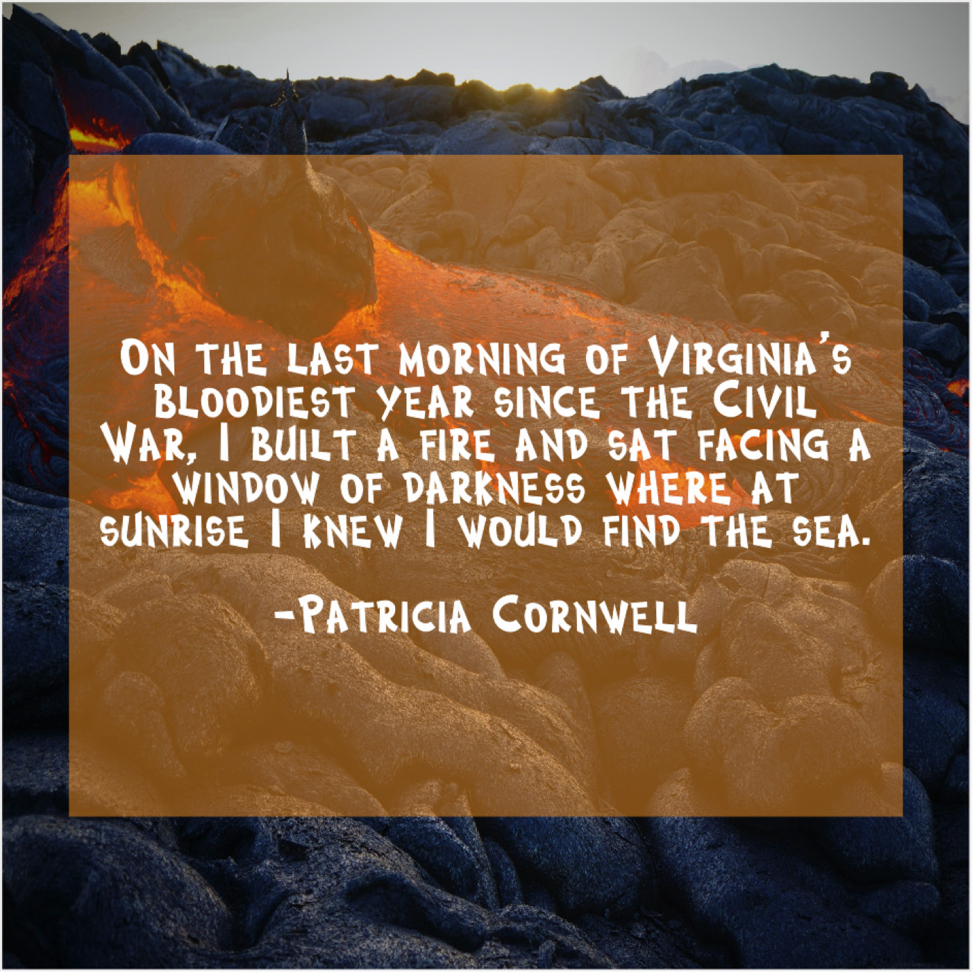 Patricia Cornwell Patricia Cornwell – On the last morning of… August 20, 2019 admin “On the last morning of Virginia’s bloodiest year since the Civil War, I built a fire and sat facing a window of darkness where at sunrise I knew I would find the sea.”-Patricia Cornwell
