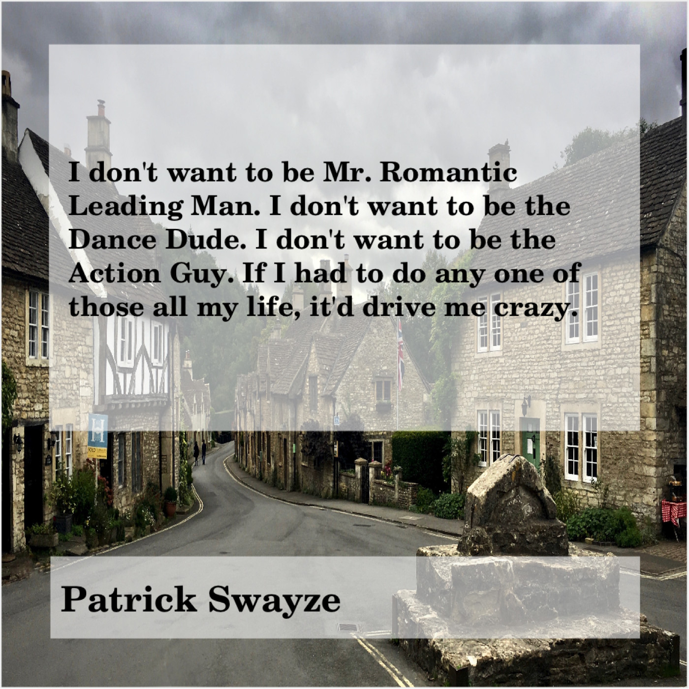 “I don’t want to be Mr. Romantic Leading Man. I don’t want to be the Dance Dude. I don’t want to be the Action Guy. If I had to do any one of those all my life, it’d drive me crazy.”