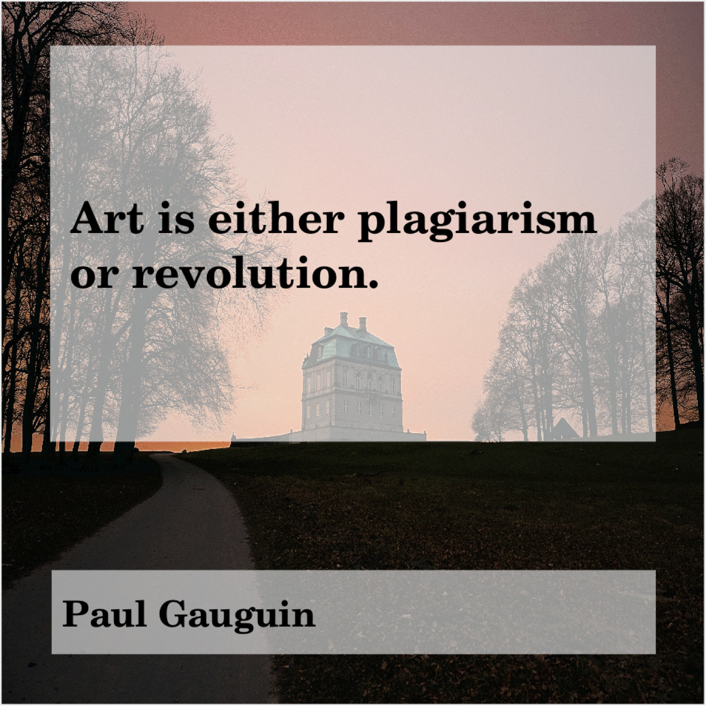 Paul Gauguin Paul Gauguin – Art is either plagiarism or… April 26, 2019 admin “Art is either plagiarism or revolution.”-Paul Gauguin