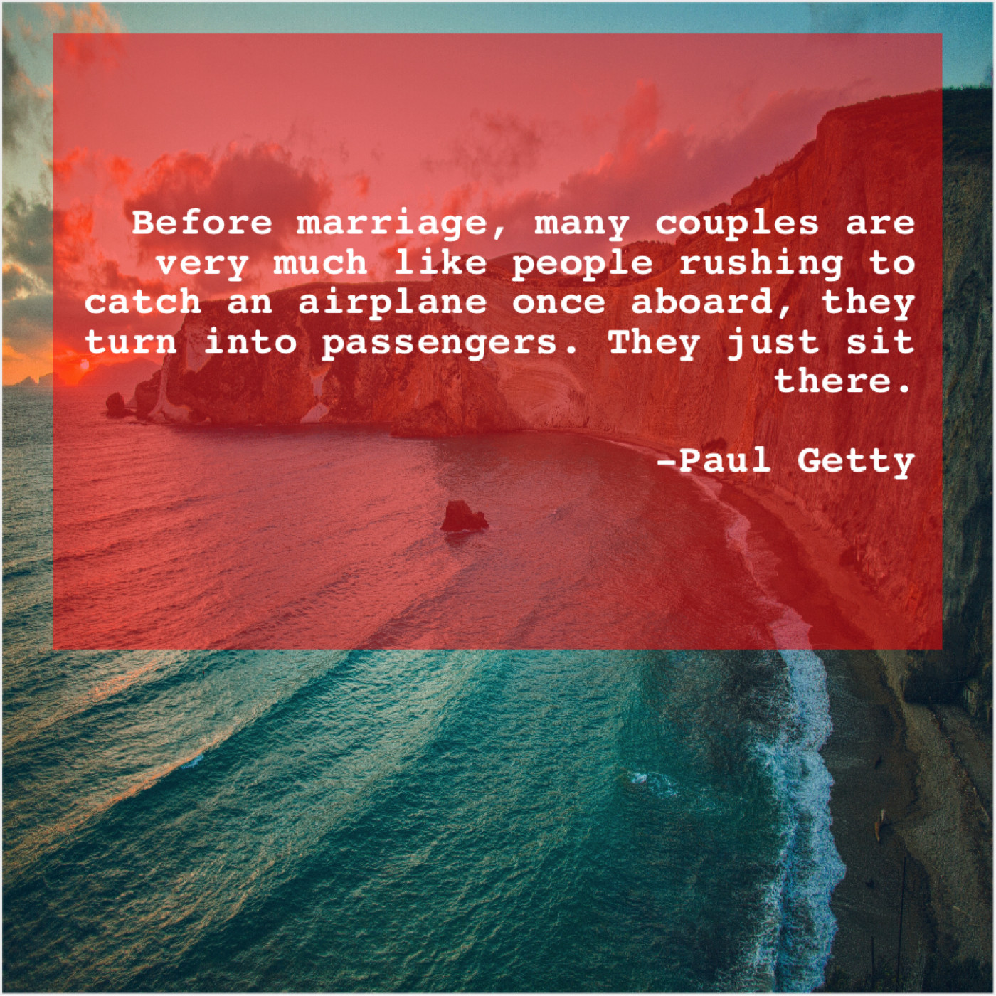 “Before marriage, many couples are very much like people rushing to catch an airplane once aboard, they turn into passengers. They just sit there.”