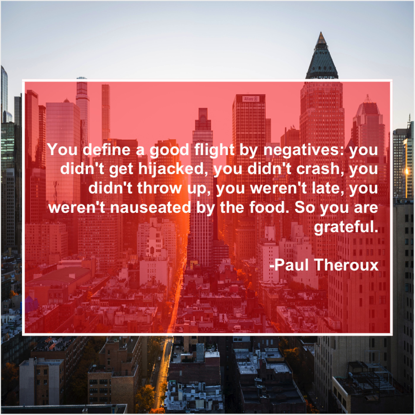Paul Theroux Paul Theroux – You define a good flight… March 5, 2019 admin “You define a good flight by negatives: you didn’t get hijacked, you didn’t crash, you didn’t throw up, you weren’t late, you weren’t nauseated by the food. So you are grateful.”-Paul Theroux