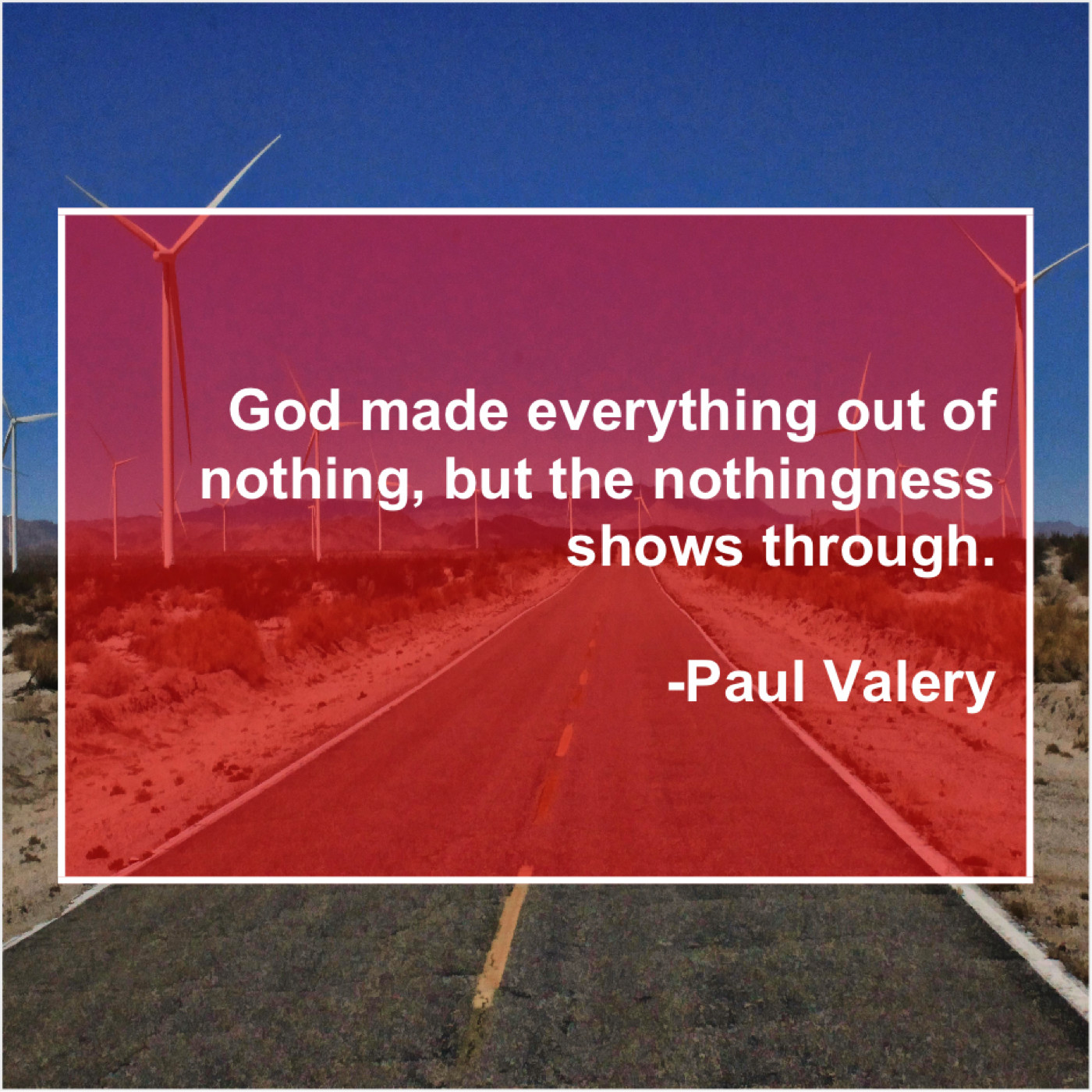 Paul Valery Paul Valery – God made everything out of… November 12, 2018 admin “God made everything out of nothing, but the nothingness shows through.”-Paul Valery