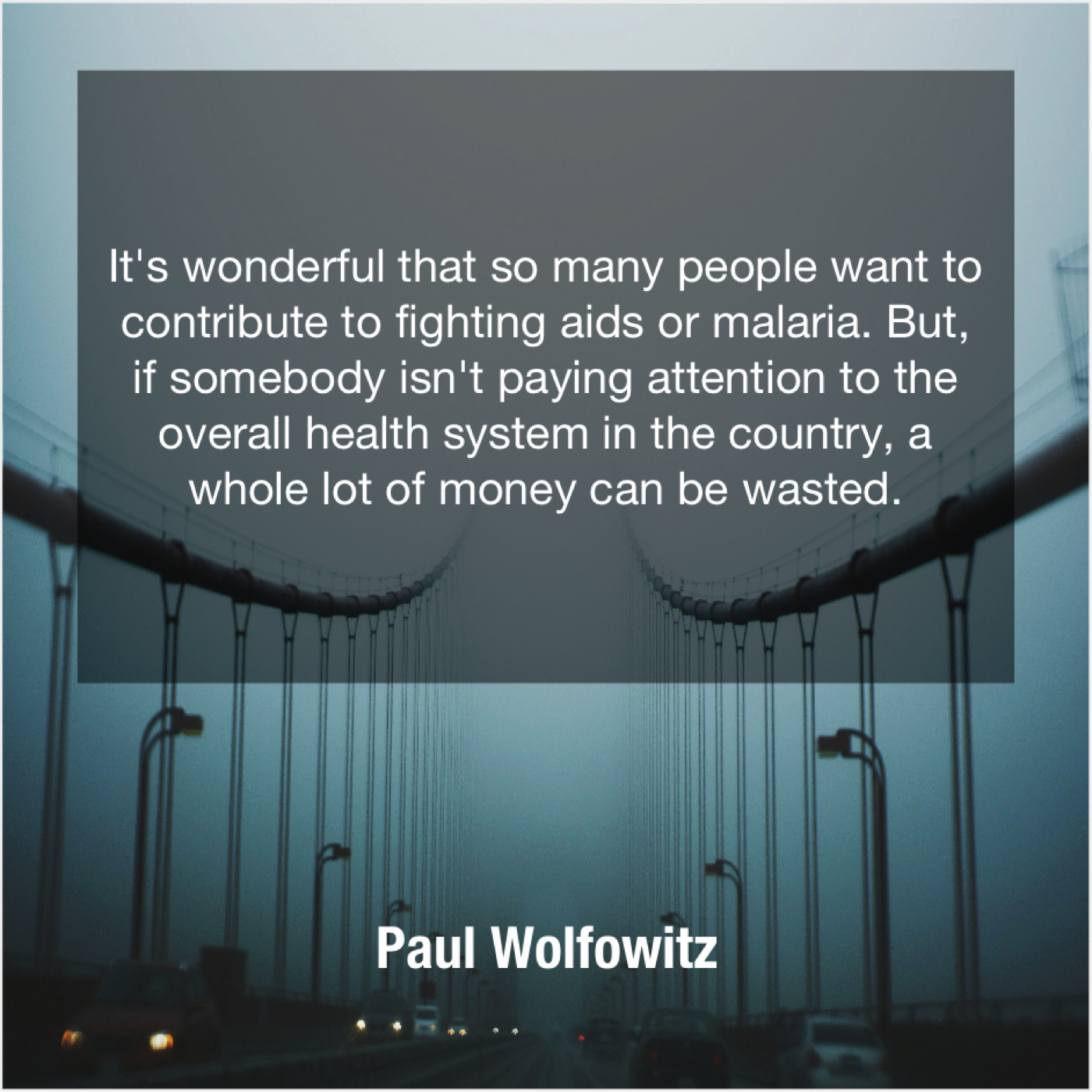 Paul Wolfowitz Paul Wolfowitz – It’s wonderful that so many… December 8, 2018 admin “It’s wonderful that so many people want to contribute to fighting aids or malaria. But, if somebody isn’t paying attention to the overall health system in the country, a whole lot of money can be wasted.”-Paul Wolfowitz