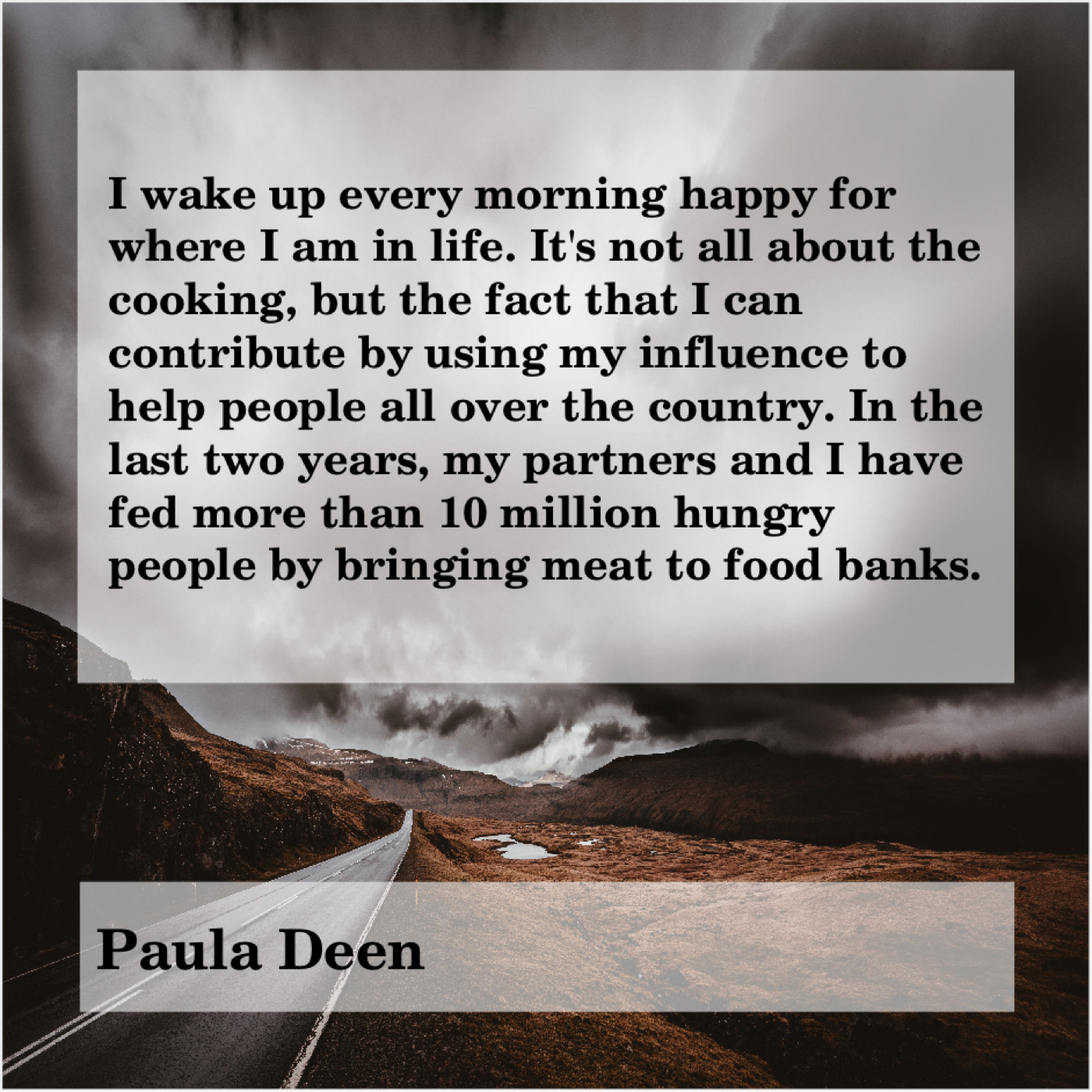 “I wake up every morning happy for where I am in life. It’s not all about the cooking, but the fact that I can contribute by using my influence to help people all over the country. In the last two years, my partners and I have fed more than 10 million hungry people by bringing meat to food banks.”
