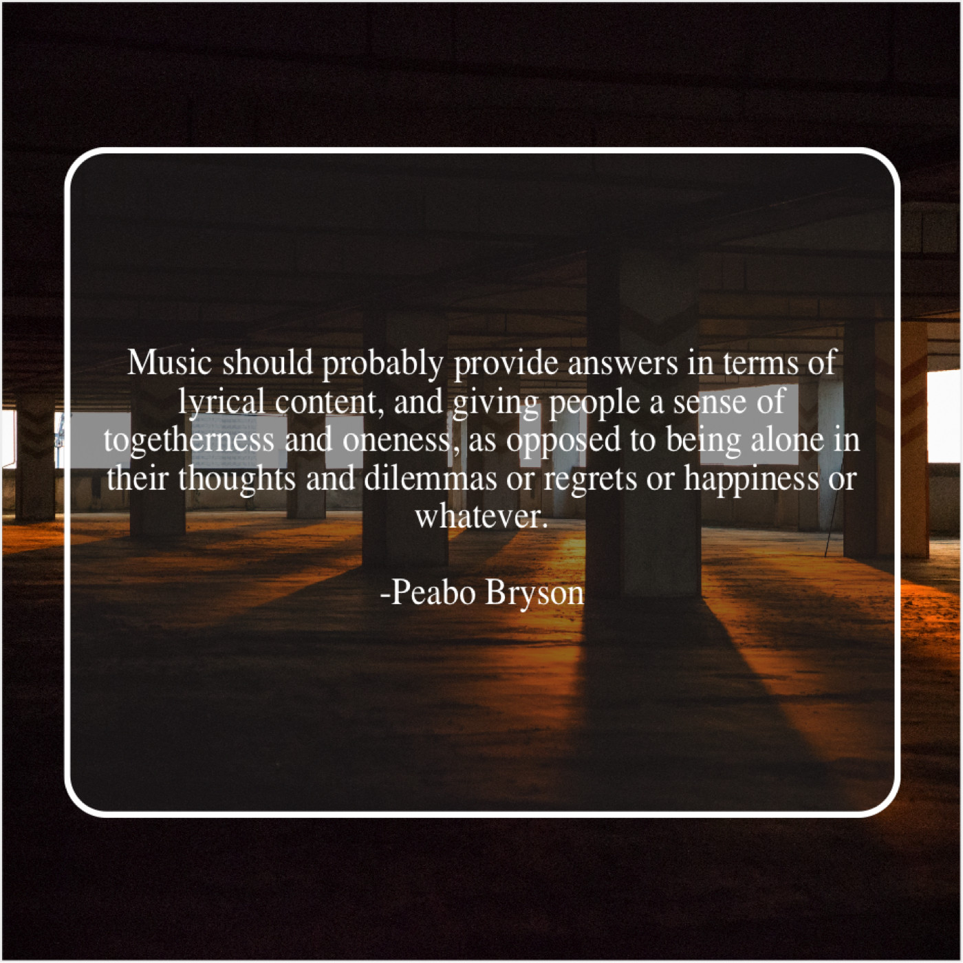Peabo Bryson Peabo Bryson – Music should probably provide answers… August 4, 2019 admin “Music should probably provide answers in terms of lyrical content, and giving people a sense of togetherness and oneness, as opposed to being alone in their thoughts and dilemmas or regrets or happiness or whatever.”-Peabo Bryson