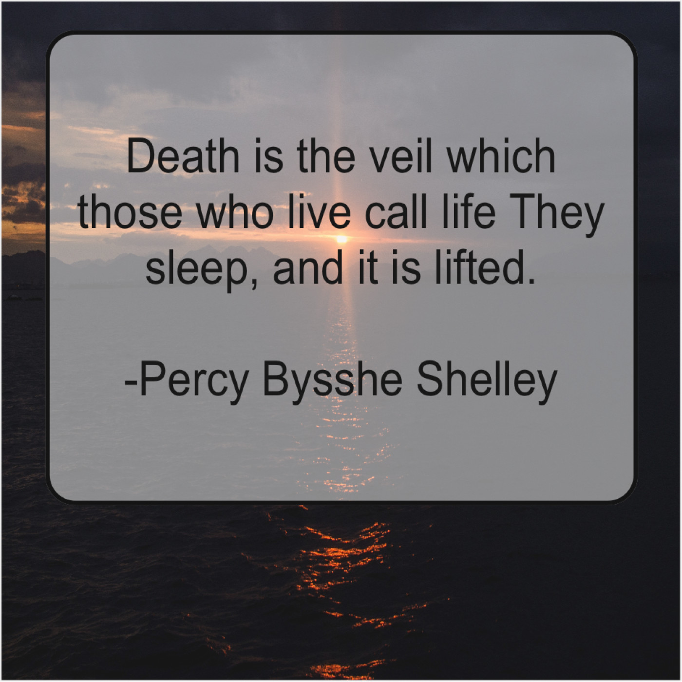 Percy Bysshe Shelley Percy Bysshe Shelley – Death is the veil which… January 6, 2019 admin “Death is the veil which those who live call life They sleep, and it is lifted.”-Percy Bysshe Shelley