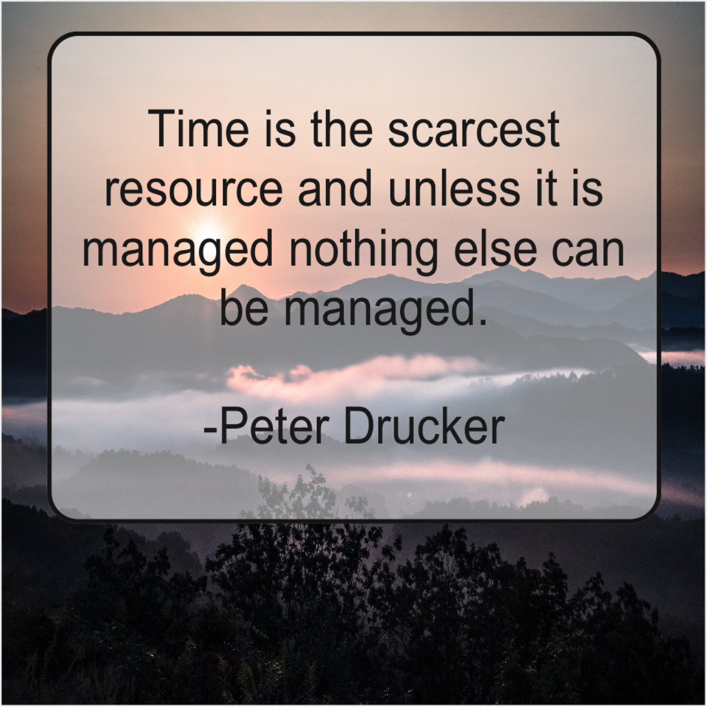 Peter Drucker Peter Drucker – Time is the scarcest resource… August 28, 2019 admin “Time is the scarcest resource and unless it is managed nothing else can be managed.”-Peter Drucker