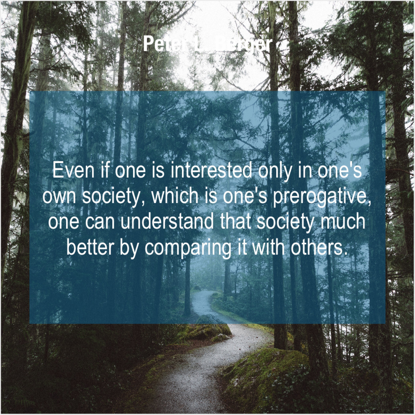 Peter L. Berger Peter L. Berger – Even if one is interested… November 15, 2018 admin “Even if one is interested only in one’s own society, which is one’s prerogative, one can understand that society much better by comparing it with others.”-Peter L. Berger