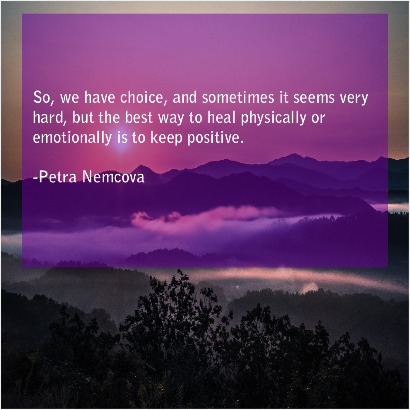 Petra Nemcova Petra Nemcova – So, we have choice, and… October 19, 2019 admin “So, we have choice, and sometimes it seems very hard, but the best way to heal physically or emotionally is to keep positive.”-Petra Nemcova