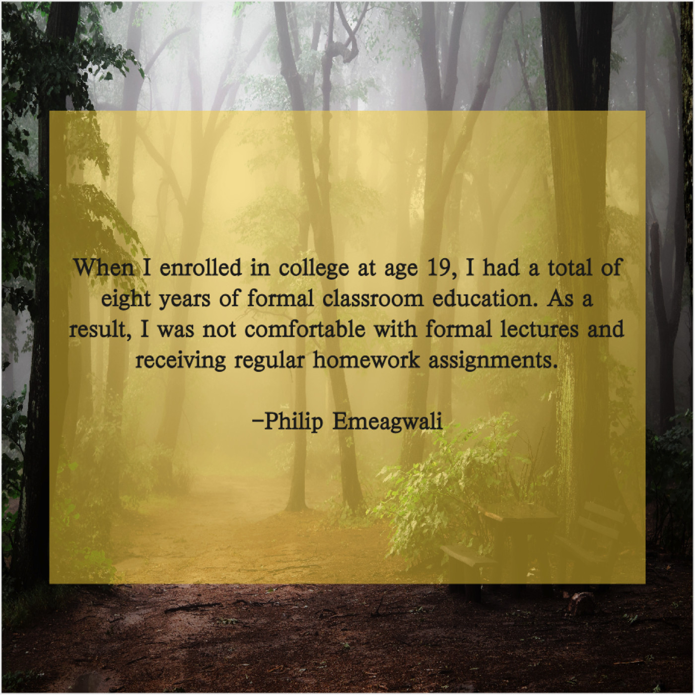 Philip Emeagwali Philip Emeagwali – When I enrolled in college… June 26, 2019 admin “When I enrolled in college at age 19, I had a total of eight years of formal classroom education. As a result, I was not comfortable with formal lectures and receiving regular homework assignments.”-Philip Emeagwali