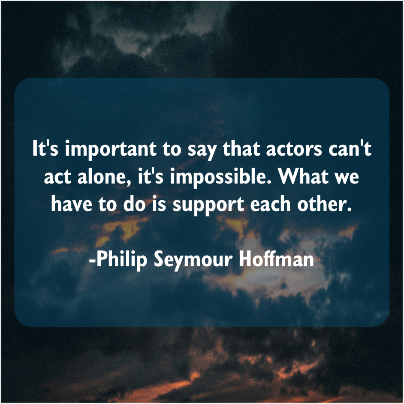 Philip Seymour Hoffman Philip Seymour Hoffman – It’s important to say that… February 12, 2019 admin “It’s important to say that actors can’t act alone, it’s impossible. What we have to do is support each other.”-Philip Seymour Hoffman