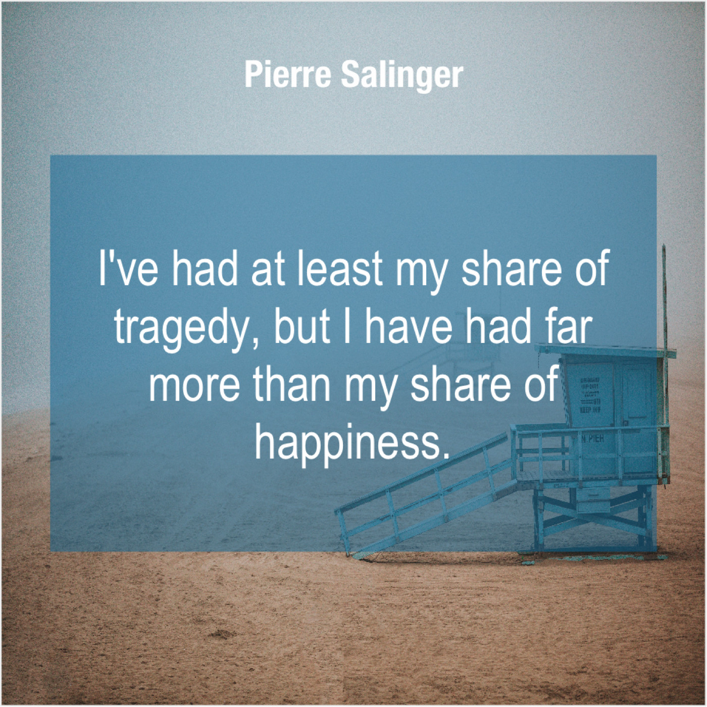 Pierre Salinger Pierre Salinger – I’ve had at least my… May 18, 2019 admin “I’ve had at least my share of tragedy, but I have had far more than my share of happiness.”-Pierre Salinger