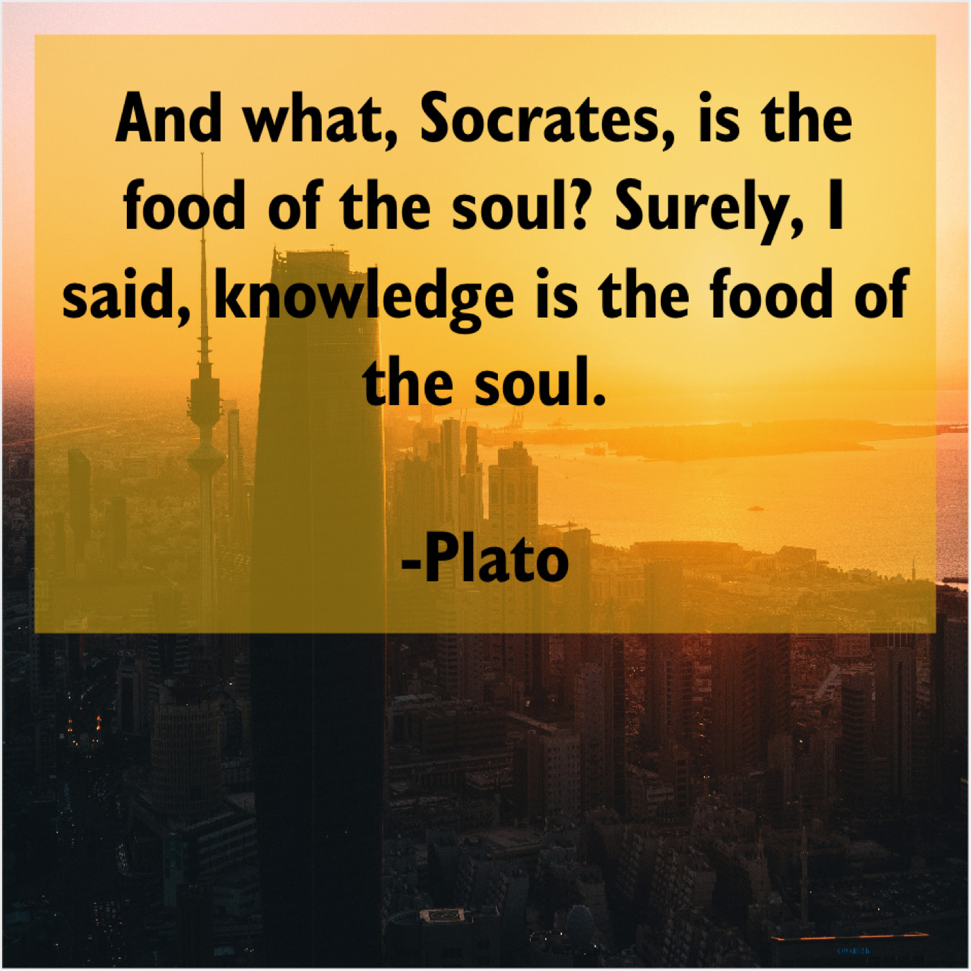 Plato Plato – And what, Socrates, is the… September 24, 2019 admin “And what, Socrates, is the food of the soul? Surely, I said, knowledge is the food of the soul.”-Plato