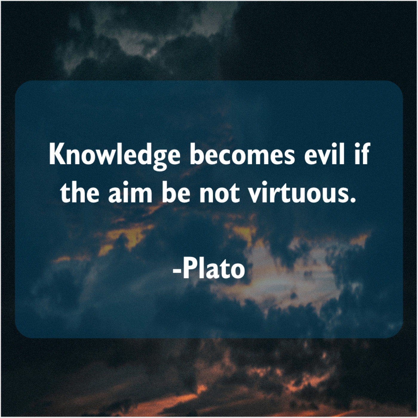 Plato Plato – Knowledge becomes evil if the… June 14, 2019 admin “Knowledge becomes evil if the aim be not virtuous.”-Plato