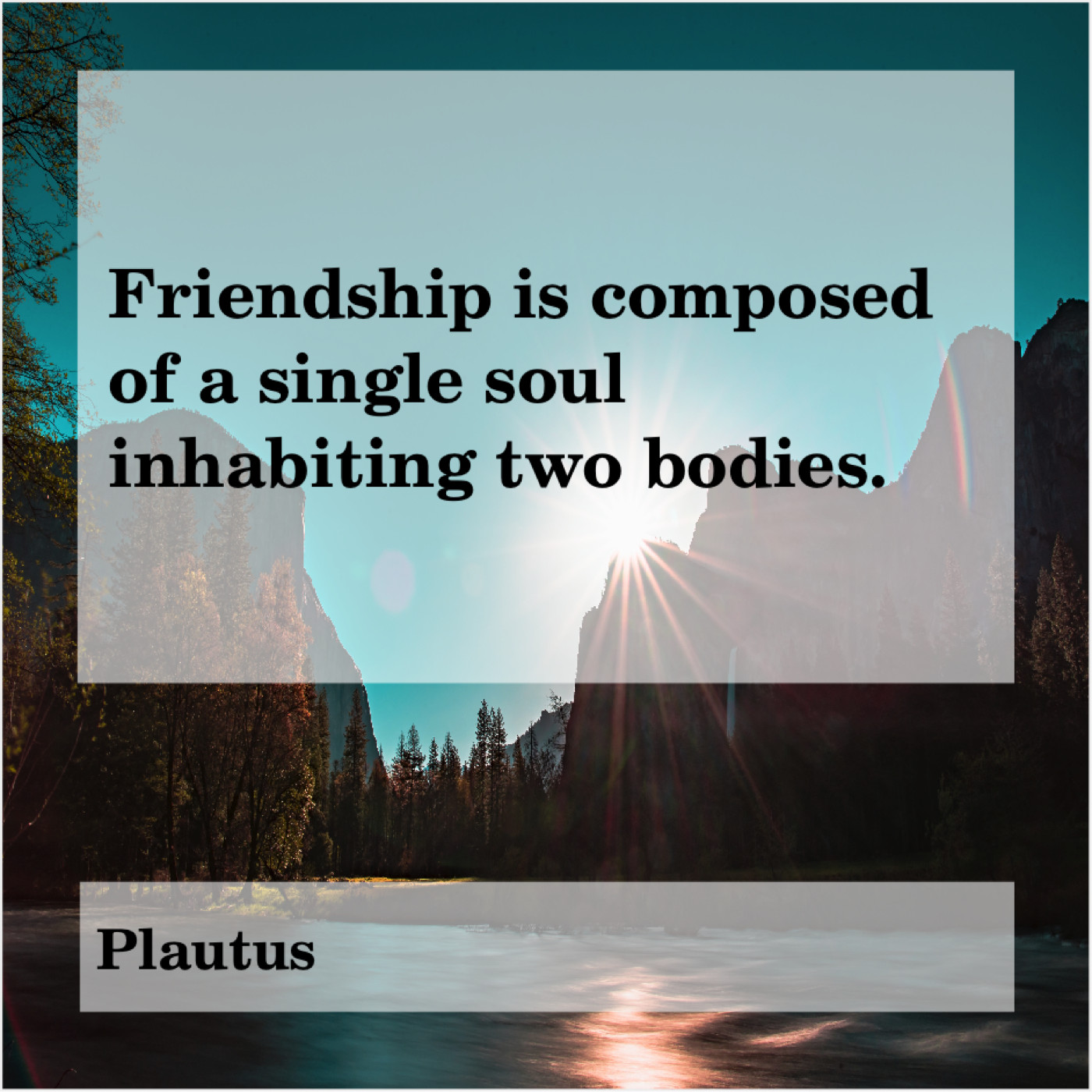 Plautus Plautus – Friendship is composed of a… August 13, 2019 admin “Friendship is composed of a single soul inhabiting two bodies.”-Plautus