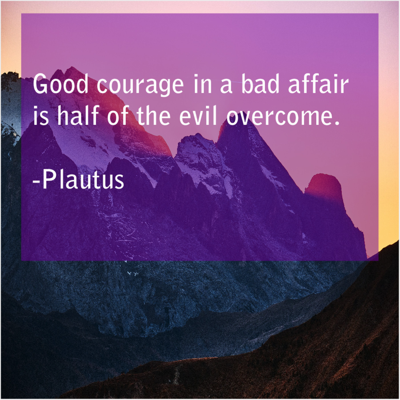 Plautus Plautus – Good courage in a bad… February 17, 2019 admin “Good courage in a bad affair is half of the evil overcome.”-Plautus