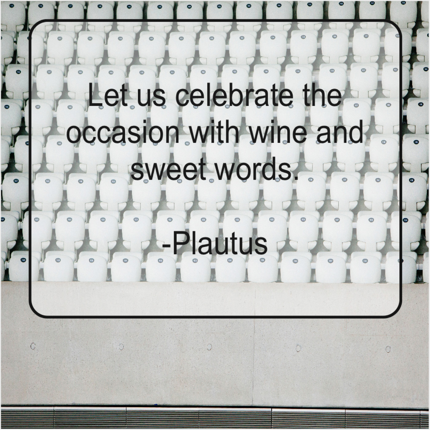 Plautus Plautus – Let us celebrate the occasion… March 26, 2019 admin “Let us celebrate the occasion with wine and sweet words.”-Plautus