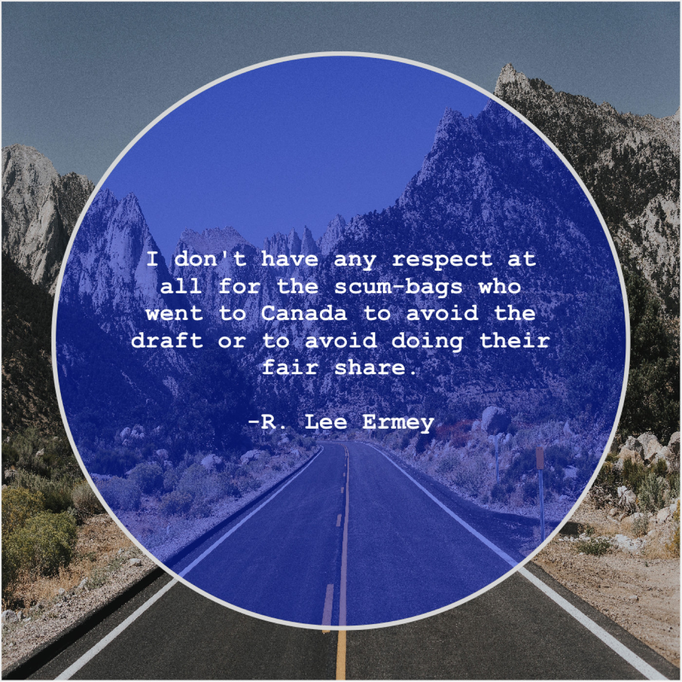 R. Lee Ermey R. Lee Ermey – I don’t have any respect… May 5, 2019 admin “I don’t have any respect at all for the scum-bags who went to Canada to avoid the draft or to avoid doing their fair share.”-R. Lee Ermey