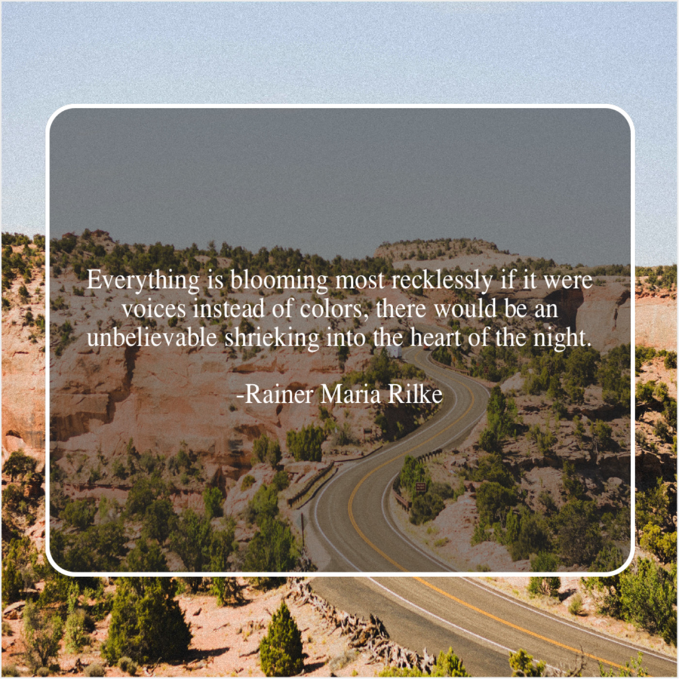 Rainer Maria Rilke Rainer Maria Rilke – Everything is blooming most recklessly… November 30, 2018 admin “Everything is blooming most recklessly if it were voices instead of colors, there would be an unbelievable shrieking into the heart of the night.”-Rainer Maria Rilke