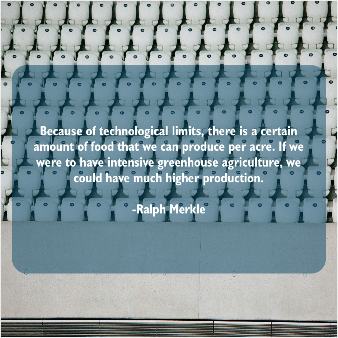 Ralph Merkle Ralph Merkle – Because of technological limits, there… August 19, 2019 admin “Because of technological limits, there is a certain amount of food that we can produce per acre. If we were to have intensive greenhouse agriculture, we could have much higher production.”-Ralph Merkle