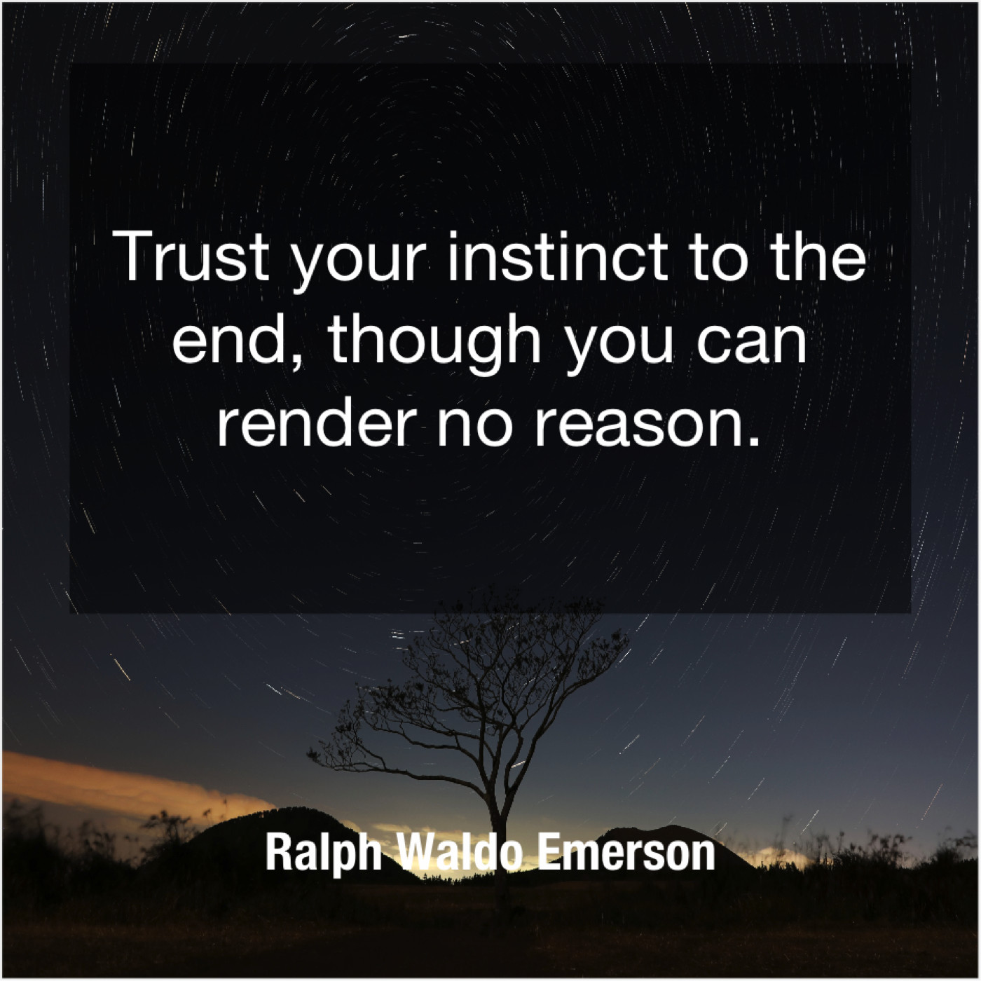 Ralph Waldo Emerson Ralph Waldo Emerson – Trust your instinct to the… October 19, 2019 admin “Trust your instinct to the end, though you can render no reason.”-Ralph Waldo Emerson