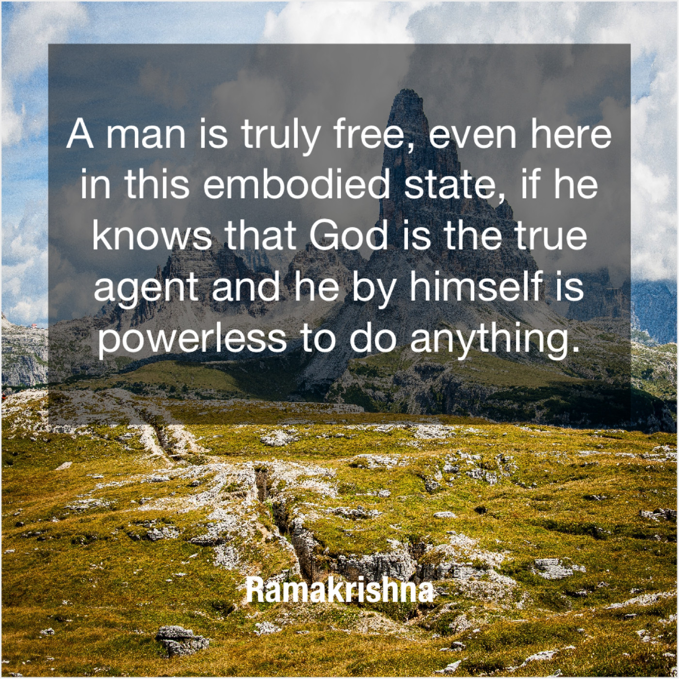 Ramakrishna Ramakrishna – A man is truly free… January 18, 2019 admin “A man is truly free, even here in this embodied state, if he knows that God is the true agent and he by himself is powerless to do anything.”-Ramakrishna