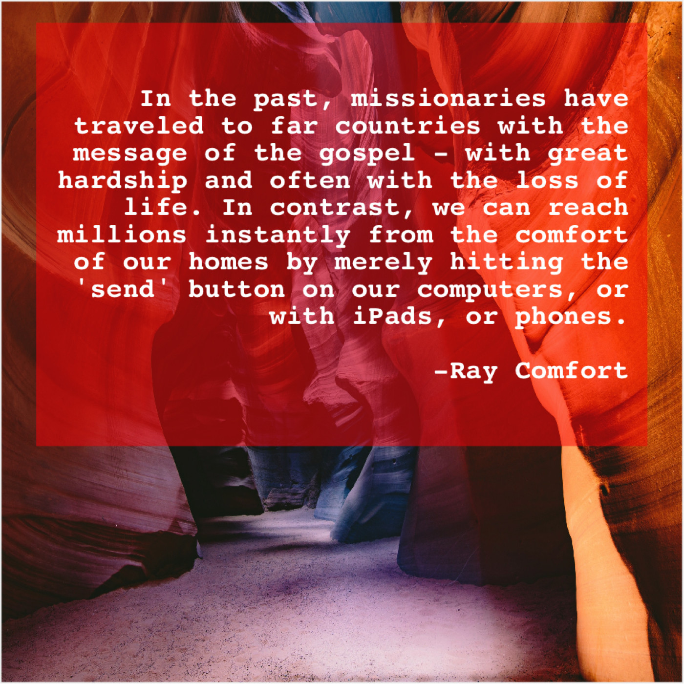 “In the past, missionaries have traveled to far countries with the message of the gospel – with great hardship and often with the loss of life. In contrast, we can reach millions instantly from the comfort of our homes by merely hitting the ‘send’ button on our computers, or with iPads, or phones.”