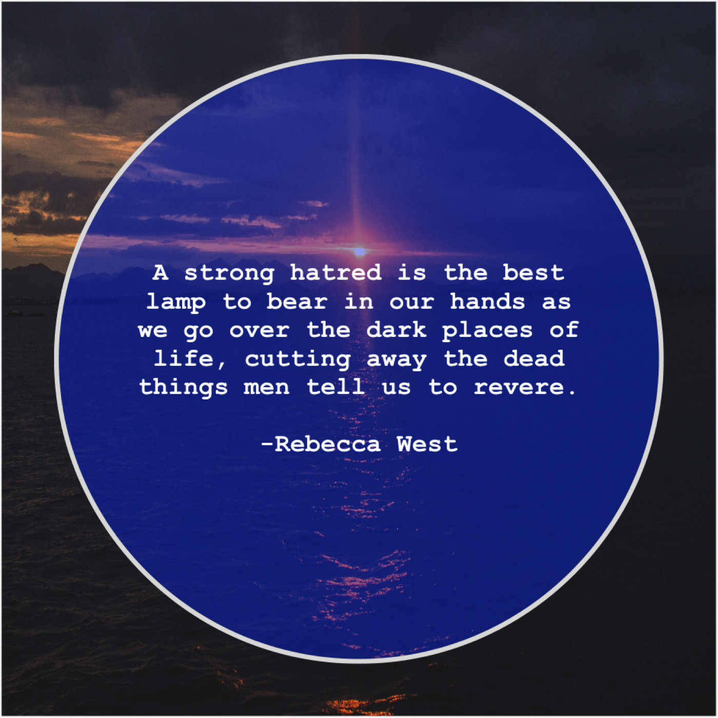 “A strong hatred is the best lamp to bear in our hands as we go over the dark places of life, cutting away the dead things men tell us to revere.”